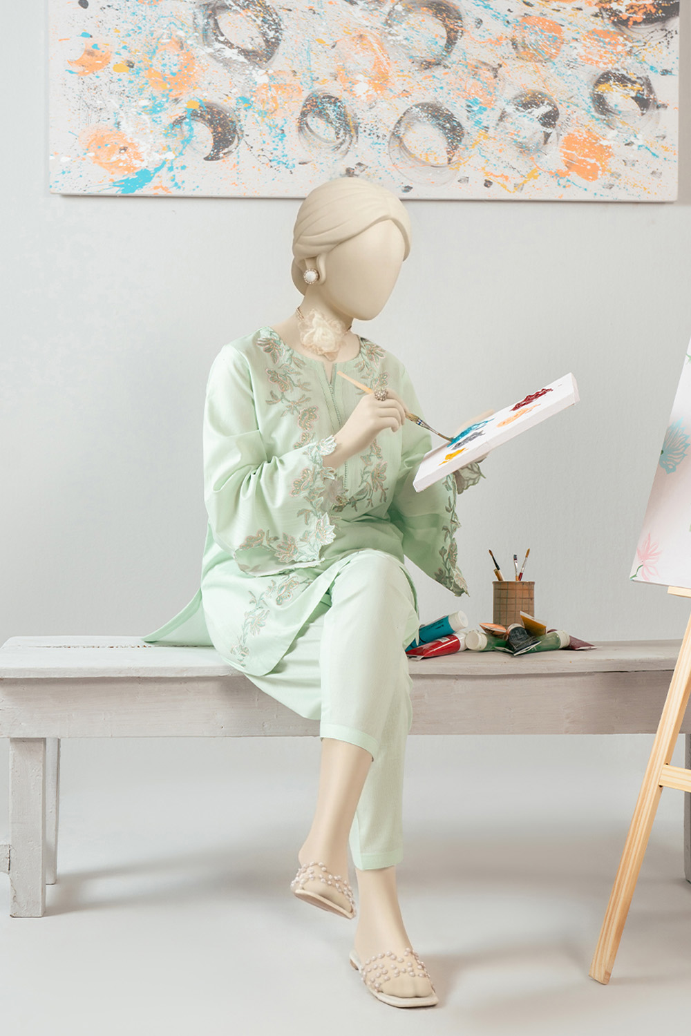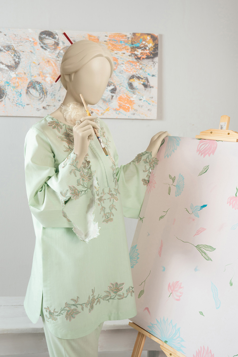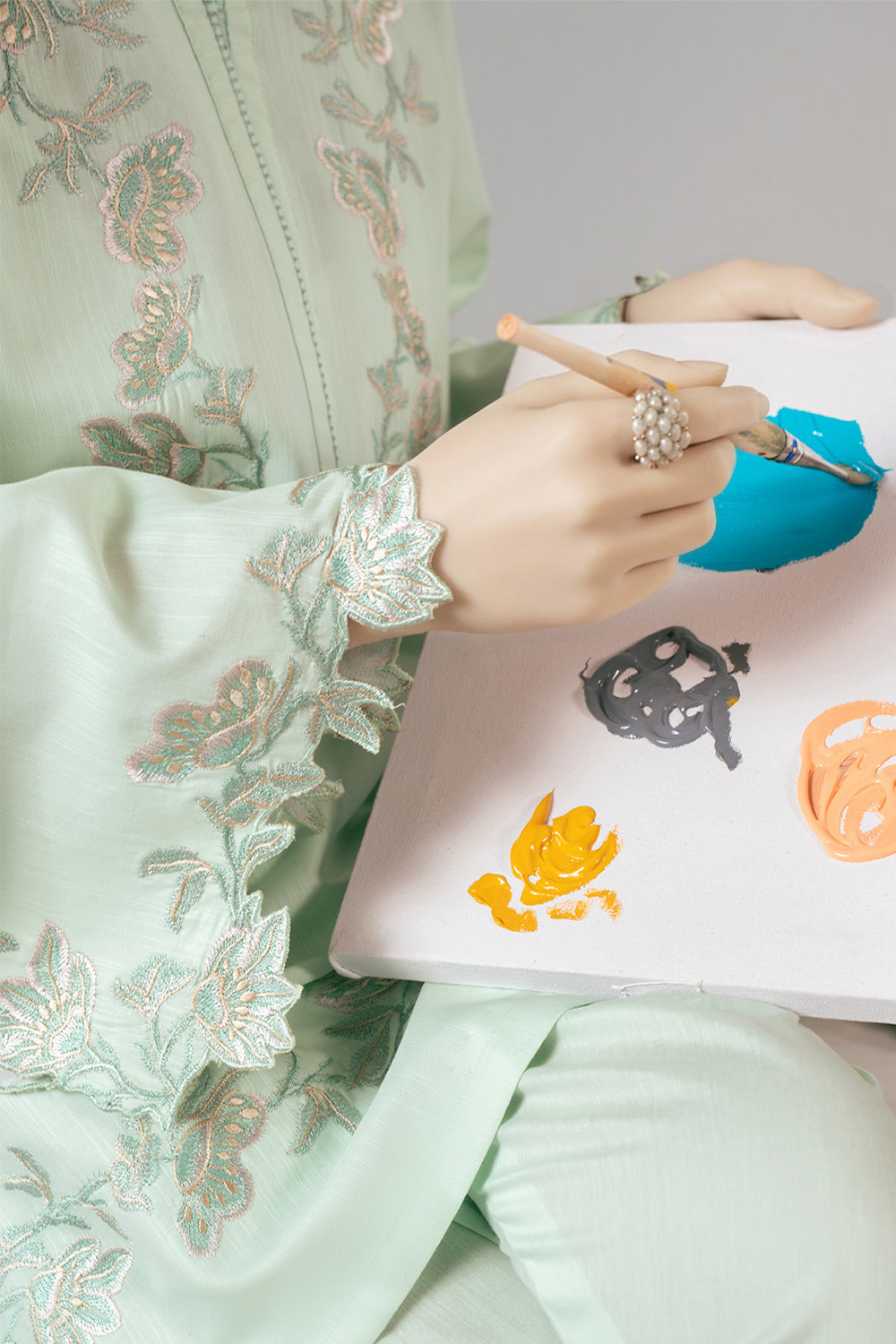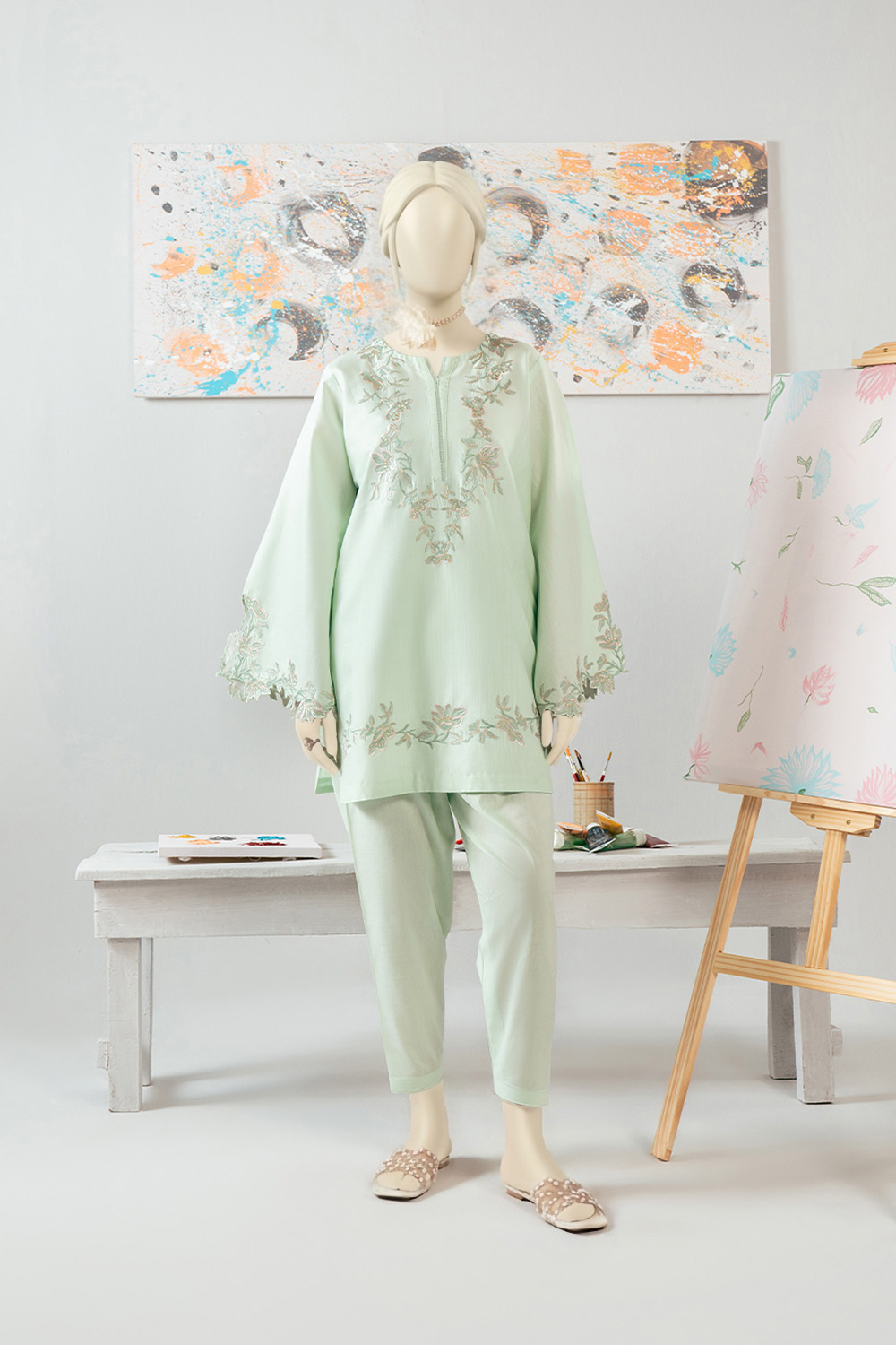 Crafted in breathable slub lawn, Iris comes in a soft mint blue hue with delicate embroidery on the shirt front and sleeves for a refined touch.