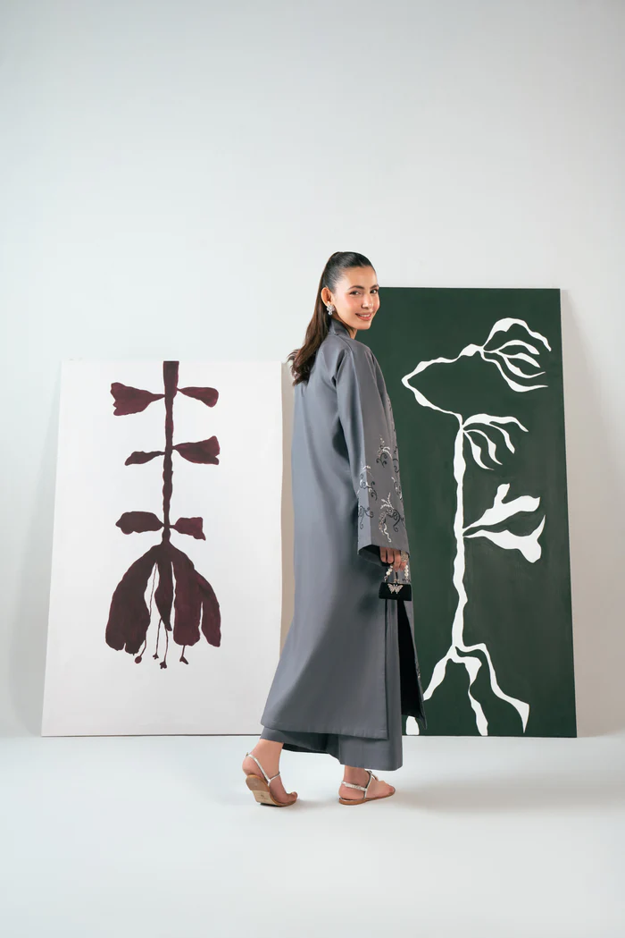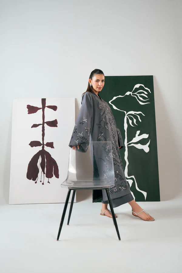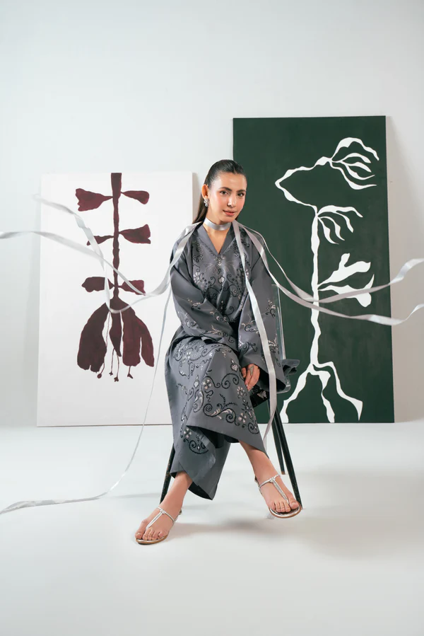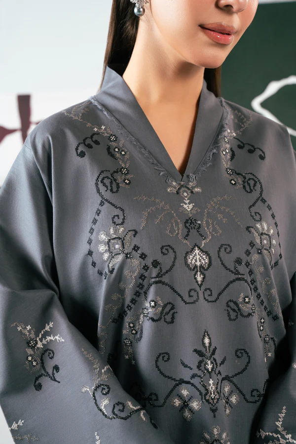 Crafted in breathable cotton, Ziva features a graceful long shirt silhouette in a deep grey tone. Intricate cross-stitch embroidery across the shirt and sleeves adds timeless character with a modern edge.
