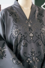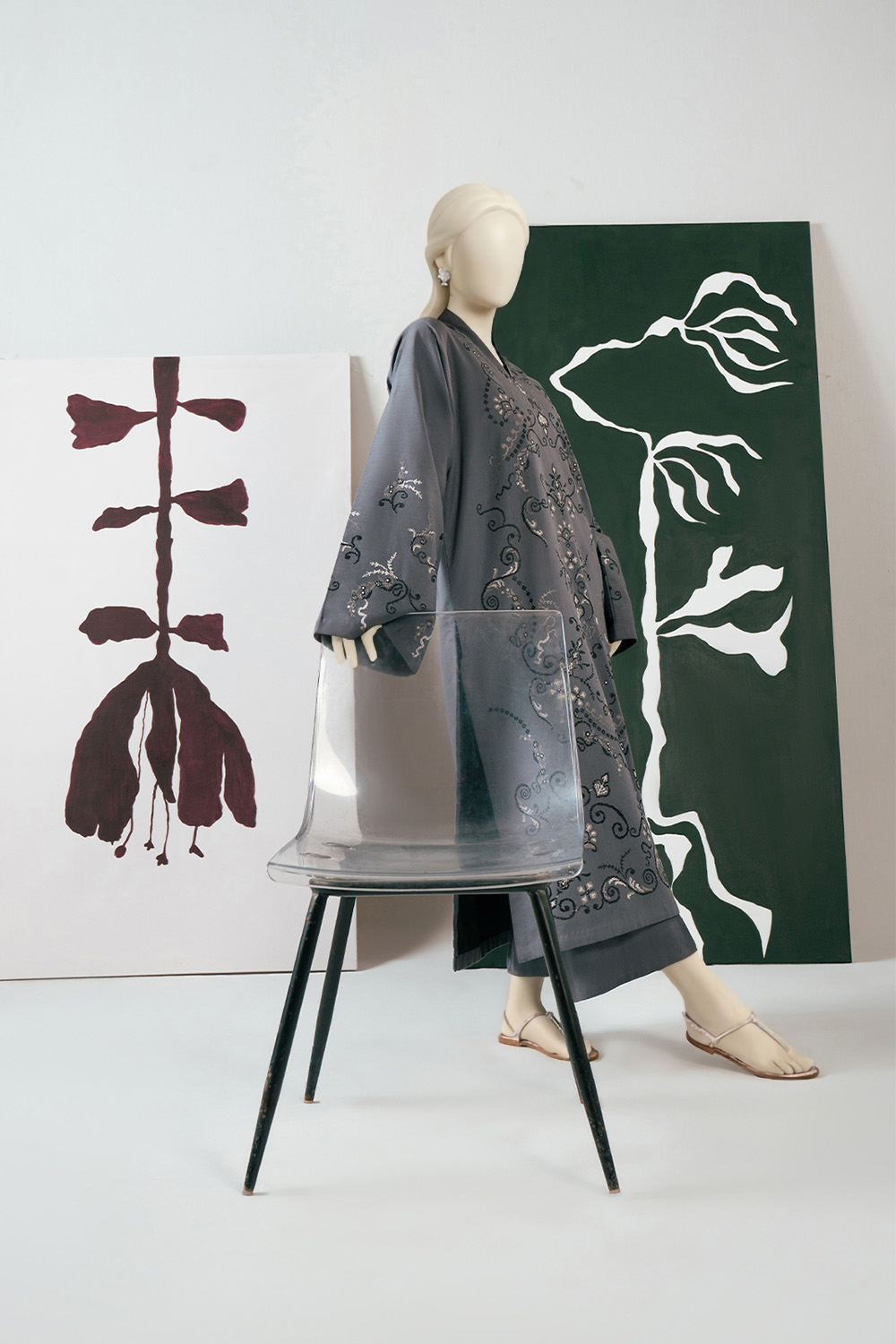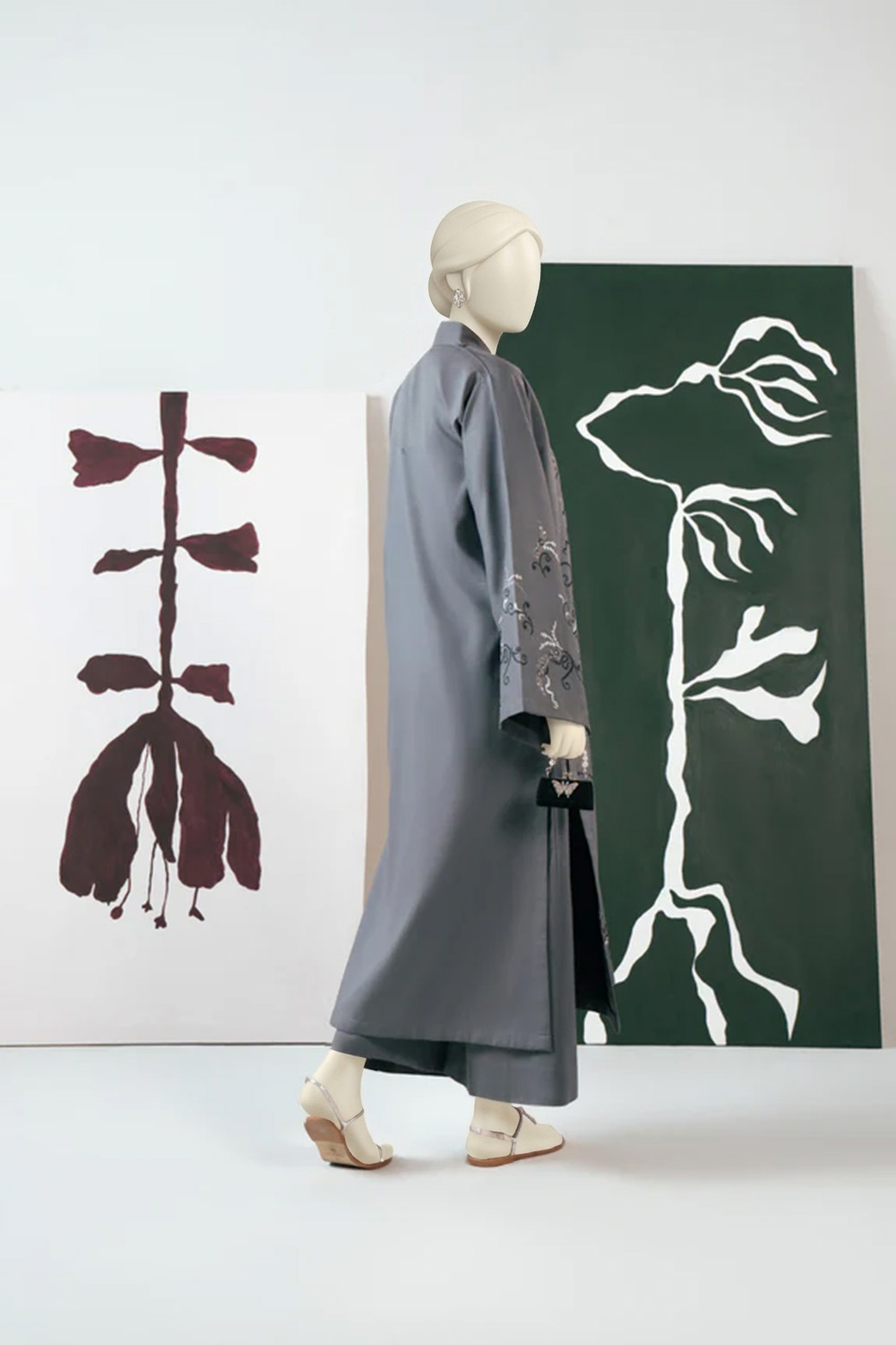 Crafted in breathable cotton, Ziva features a graceful long shirt silhouette in a deep grey tone. Intricate cross-stitch embroidery across the shirt and sleeves adds timeless character with a modern edge.